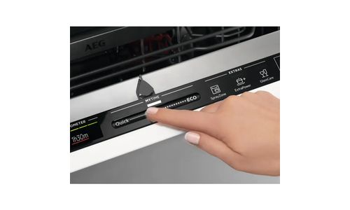 QuickSelect maakt een optimale bediening van de vaatwasser mogelijk. Stel de cyclustijd met de schuifbediening in en voeg met één vingerdruk extra keuzes toe. De machine doet de rest. Afwassen op maat op het meest geschikte moment, én een vlekkeloze vaat.