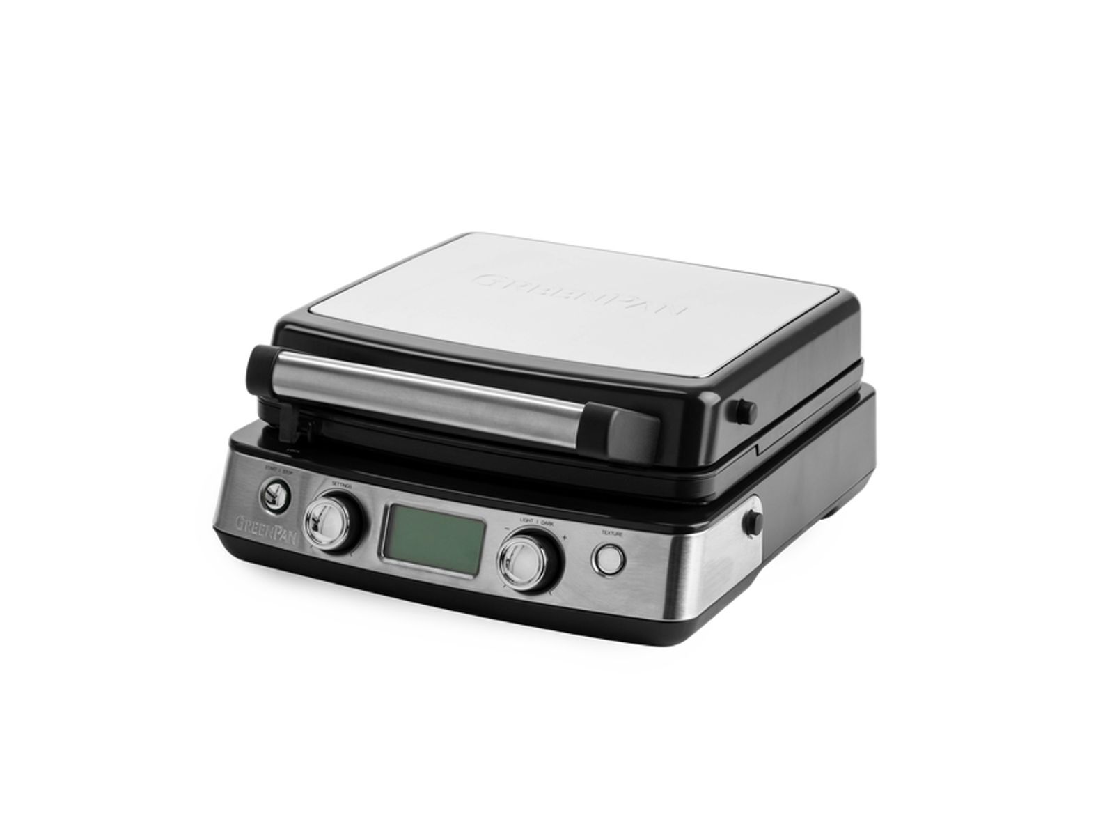 Het wafelijzer warmt snel op en heeft een grote goot om overlopend beslag op te vangen. Bovendien mogen de wafelplaten in de vaatwasser.