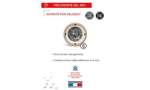 Deze compacte zoutmolen Paris u’Select van 12 cm is vervaardigd in Frankrijk uit beukenhout dat afkomstig is uit duurzaam beheerde bossen. Het stalen maalwerk, speciaal ontworpen voor het malen van droog zout, heeft een onbeperkte garantie. Onderaan deze zoutmolen gaat een efficiënt en gepatenteerd systeem schuil om de maalgraad in te stellen waarmee u precies de omvang van de zoutkristallen kunt aanpassen, van verfijnd tot krokant. In deze satijnzwarte afwerking en gecombineerd met de molen Paris in dezelfde afwerking vormt hij een schitterend duo met een volledig zwarte look! - Vervaardigd in Frankrijk - PEFC™-hout afkomstig uit Franse bossen - U'Select-systeem met instelbare maalgraad: 6 vooraf ingestelde maalgraden - Wateroplosbare tint en vernis - Zijn maalwerk heeft een onbeperkte garantie - Voor het malen van droge zoutkristallen (steenzout) die maximaal 4 mm groot zijn. - Klaar voor gebruik: inclusief zoutkristallen - Niet gebruiken voor nat zeezout, zelfs niet als het gedroogd is