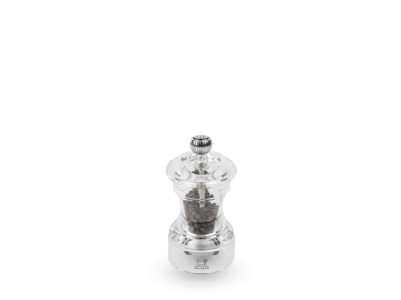 Het tijdloze beroemde model Bistro dat is ontworpen in 1874, is de oudste tafelmolen van Peugeot. In deze doorzichtige afwerking is de peper die hij bevat zichtbaar.