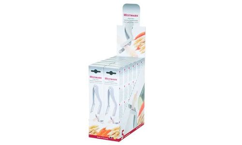 Peel-star dubbele dunschiller uit aluminium en rvs in display