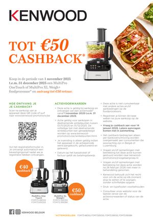 | Kenwood Foodprocessor: Tot €50 cashback |
