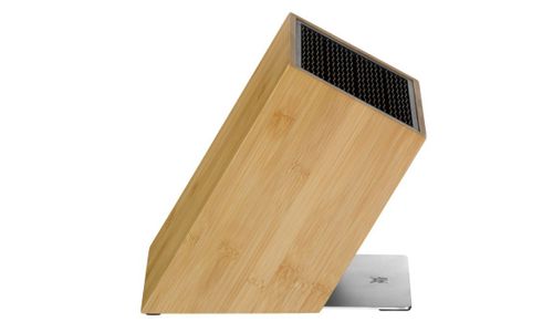 Bewaar al uw messen veilig op één plek met het WMF FlexTec Messenblok. Met een strak design en ruimte voor maximaal 15 keukenmessen, houdt deze veelzijdige bamboe messenhouder uw go-to messen en accessoires bij de hand in de configuratie van uw keuze - de mogelijkheden zijn eindeloos. Het FlexTec inzetstuk belooft optimale fixatie en bescherming voor al uw messen, met extra dikke sleuven voor scharen en Chinese hakmessen. Een stijlvolle basis van Cromargan roestvrij staal zorgt voor maximale stabiliteit. Ontdek een eigentijdse messenhouder ontworpen voor maximaal gebruiksgemak met een chique, dynamische esthetiek die naadloos past in elke keuken en netjes op uw aanrecht of plank.
