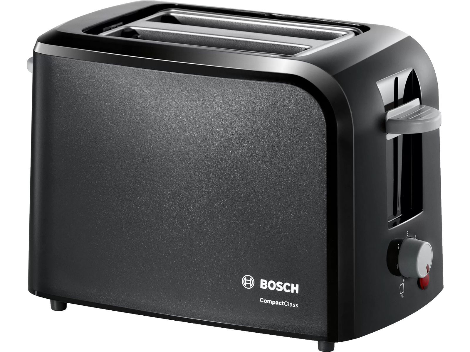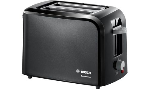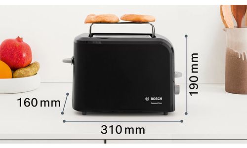 Compact Class Zwart, compacte toaster 2 smalle gleuven, opwarmstand, geïntegreerd broodjesopzetstuk, 980 W