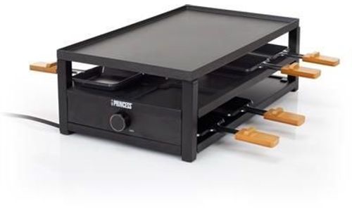 Princess Black Steel Raclette, 8 raclette pannetjes, 8 houten spatels & handleiding