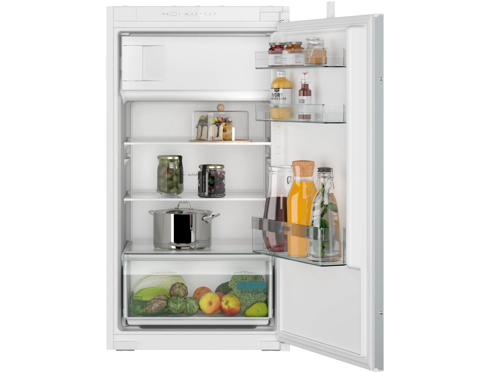 Met de Super-koelen knop kunt u de temperatuur in de koelkast snel verlagen tot +2 °C. Dit voorkomt dat etenswaren die al zijn afgekoeld, weer warm worden als u niet gekoeld eten in de koelkast zet.