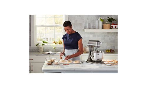 Laat je creativiteit de vrije loop met de KitchenAid keukenrobot van 6,6 L van het WERELDWIJD TOONAANGEVENDE MIXERMERK(2). Je kunt de hele dag, elke dag creëren met deze krachtige keukenrobot met grote capaciteit. Moeiteloos pizzadeeg kneden, cakebeslag mengen, meringues opkloppen, zelfs pulled pork maken met 1,5 keer meer vermogen in de mengkom dan bij onze keukenrobot met in hoogte verstelbare kom(3).