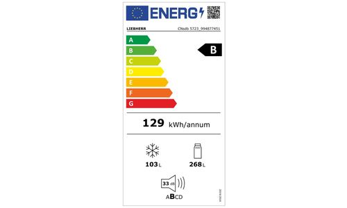++ Totale netto inhoud: 371 Liter ++ Geluidsniveau: 33 dB(A) ++ Vriesgedeelte ++