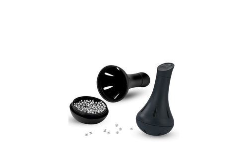 Er is niets zo vervelend als het reinigen van een karaf waarin aanslag van kalk en tannine zich kunnen nestelen... De Peugeot reinigingskogeltjes “Bilbo” doen het werk in uw plaats. Vul de helft van uw karaf met warm water en giet er de kogeltjes in. Laat de kogeltjes de karaf reinigen door ze voorzichtig door de karaf te laten rollen. Door de wrijving van de reinigingskogeltjes wordt de aanslag verwijderd die zich heeft gevormd op de wanden van uw karaf. De kogeltjes worden geleverd in een klein, volledig zwart flesje om ze na het reinigen in te bewaren. Om de kogeltjes te reinigen, opent u het bovenste deel van het flesje en laat u er warm water instromen. Er zijn afvoergaatjes voorzien om het water weg te laten lopen. Laat het flesje en de kogeltjes binnenin drogen.