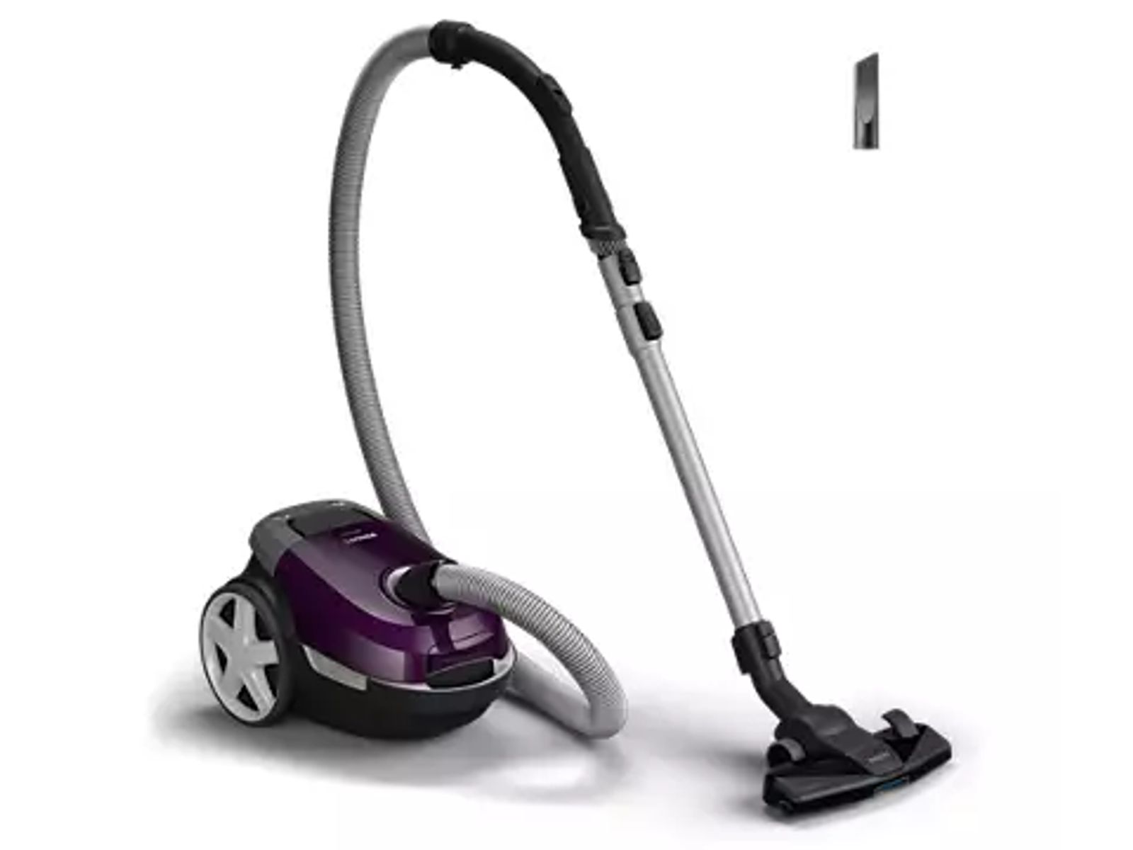 De stofborstel is in het handvat ingebouwd, zodat het apparaat altijd klaar is voor gebruik op meubilair, platte oppervlakken en bekleding.