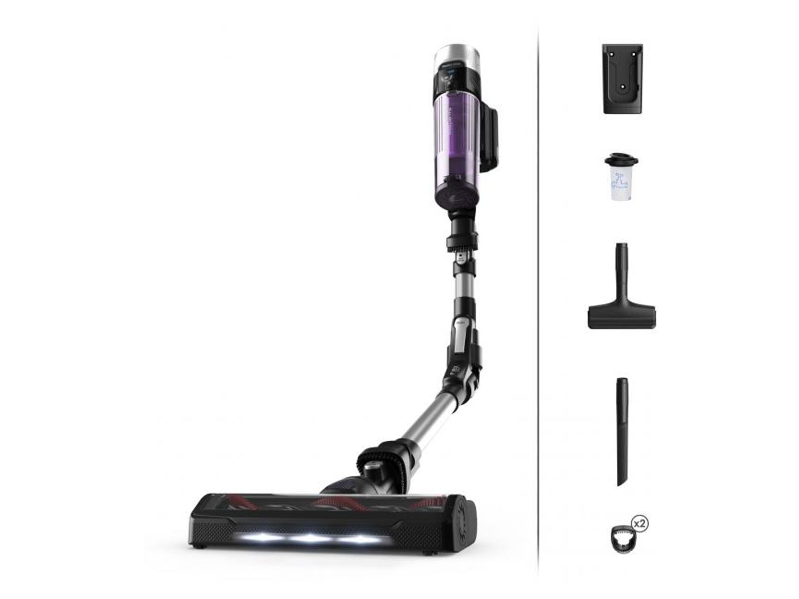 Rowenta X-Force Flex 9.60 Steelstofzuiger RH2037. Soort reiniging: Droog, Vuilafscheidingsmethode: Cyclonisch, Geluidsniveau: 83 dB. Stofzuigercontainer type: Zakloos, Kleur van het product: Zwart, Paars, Droog vuil: 0,4 l. Stroombron: Batterij/Accu, Looptijd: 45 min, Oplaadtijd: 4 uur. Gewicht: 2,5 kg, Breedte: 23,4 mm, Diepte: 24,8 mm. Breedte verpakking: 130 mm, Diepte verpakking: 780 mm, Hoogte verpakking: 304 mm