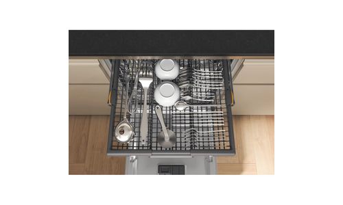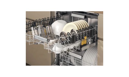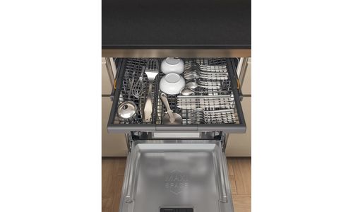 De speciale besteklade bovenin de vaatwasser bespaart ruimte en is flexibel in te richten, ook handig voor langer bestek.