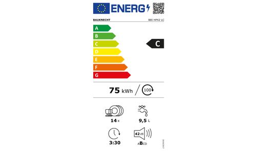 | Energieverbruik in eco-programma per 100 cycli | 75 kWh |