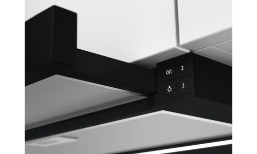 Met de mechanische drukknoppen op de kap schakel je tussen de ventilatorsnelheid en de verlichtingsinstellingen. Voor eenvoudige controle over de atmosfeer in je keuken.