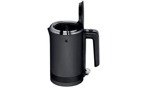De KITCHENminis Waterkoker combineert een voortreffelijke esthetiek met een compact ontwerp en biedt het toppunt van duurzaamheid en prestaties. Uitgerust met een vermogen van 1800 W, een inhoud van 0,8 liter en een verborgen roestvrijstalen verwarmingselement, kan deze kleine waterkoker worden gebruikt om zelfs de kleinste hoeveelheden water te verwarmen. Prestaties gaan hand in hand met handige functies: openen met één hand met één druk op de knop, gemakkelijk afleesbare interne waterniveauweergave, verbeterde veiligheidsfuncties, waaronder automatische kookuitschakeling, en een snoerloos formaat dat niet kan worden gemakkelijker te gebruiken zijn. Een matzwarte roestvrijstalen behuizing zorgt voor robuuste, langdurige prestaties met een elegante zwarte glanzende afwerking die altijd indruk maakt. Ontdek de volledige WMF KITCHENminis ontbijtserie, voor de perfecte mix van uitzonderlijke resultaten en strak design.
