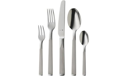 Buitengewoon design, glamoureuze uitstraling, stijlvol aan tafel, een metgezel die van elke maaltijd een bijzondere gelegenheid maakt - de 30-delige Art Deco bestekset voor 6 personen overtuigt door charme, schoonheid en tegelijkertijd absolute geschiktheid voor dagelijks gebruik. Exclusieve Cromargan protect®, een uniek hardingsproces, zorgt voor een uitstekende weerstand tegen krassen en tekenen van slijtage, waardoor een langdurige, onberispelijke schoonheid mogelijk wordt. Het bestek ligt ergonomisch perfect in de hand, de uitvoerig ingelegde lemmeten van de dinermessen zijn gesmeed uit speciaal lemmetstaal voor langdurige scherpte en flexibiliteit. Vaatwasmachinebestendig voor eenvoudige reiniging, de bestekset wordt geleverd in een hoogwaardige besteklade,