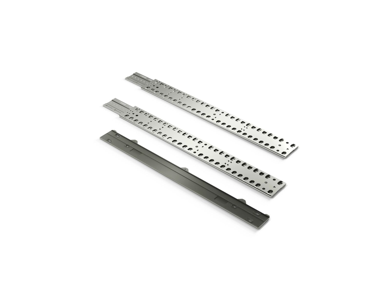 - • Tweedelige metalen rails van verzinkt staal, voor montage van gedeelde meubelfronten op volledig geïntegreerde vaatwassers • Flexibel inzetbaar voor kasthoogtes van 65,5 cm tot 81,5 cm.