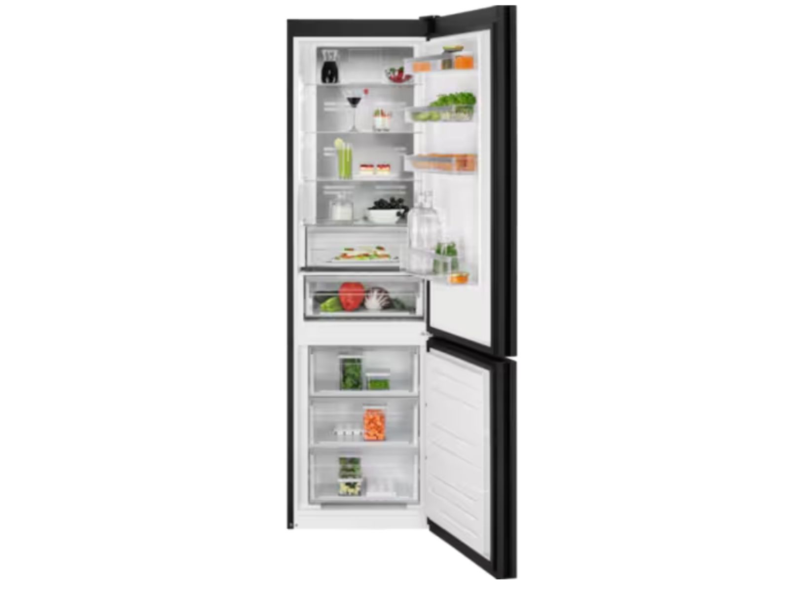 De strakke, eigentijdse vormgeving van de koelkast geeft een moderne uitstraling aan je keuken. De elegante vlakke deur is vervaardigd uit zwart mat glas, wat bijdraagt aan een hoogwaardig en minimalistisch design. Door het gebruik van deze kwaliteitsvolle materialen is deze koelkast het nieuwe pronkstuk van je keuken.