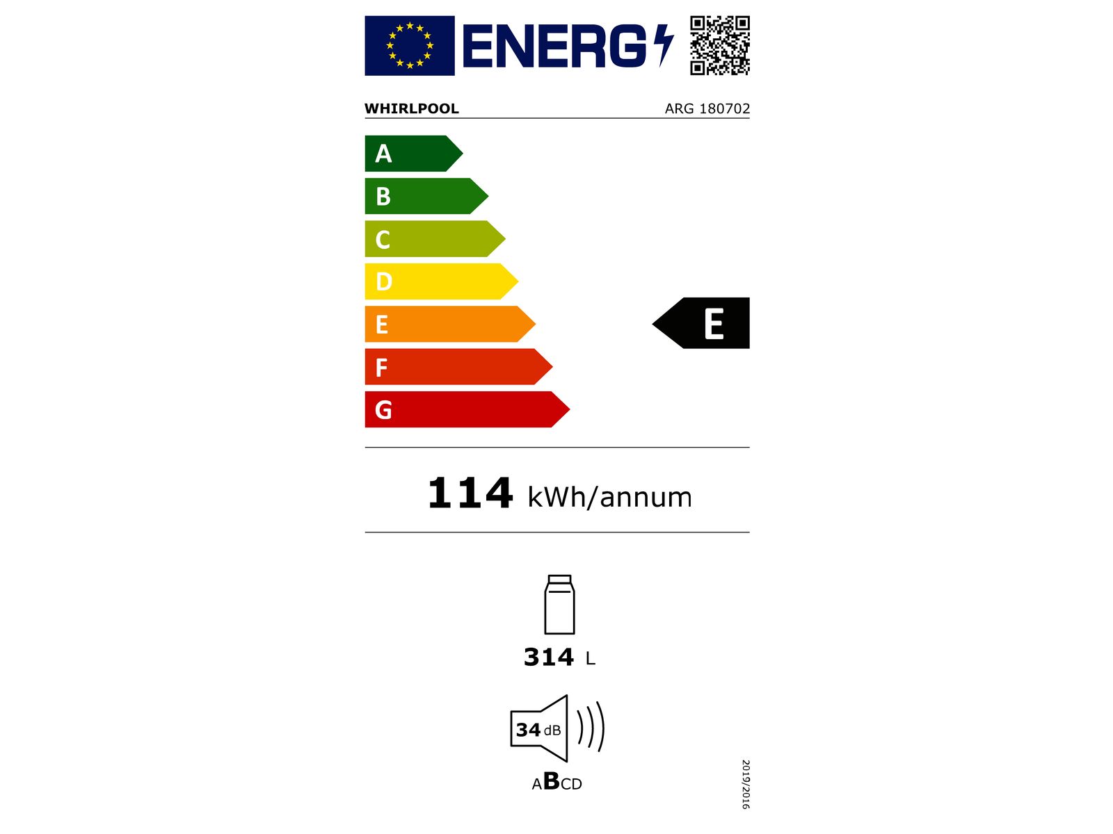 ++ Nishoogte (minimaal): 177,60 cm ++ Totale netto inhoud: 314 Liter ++ Geluidsniveau: 34 dB(A) ++