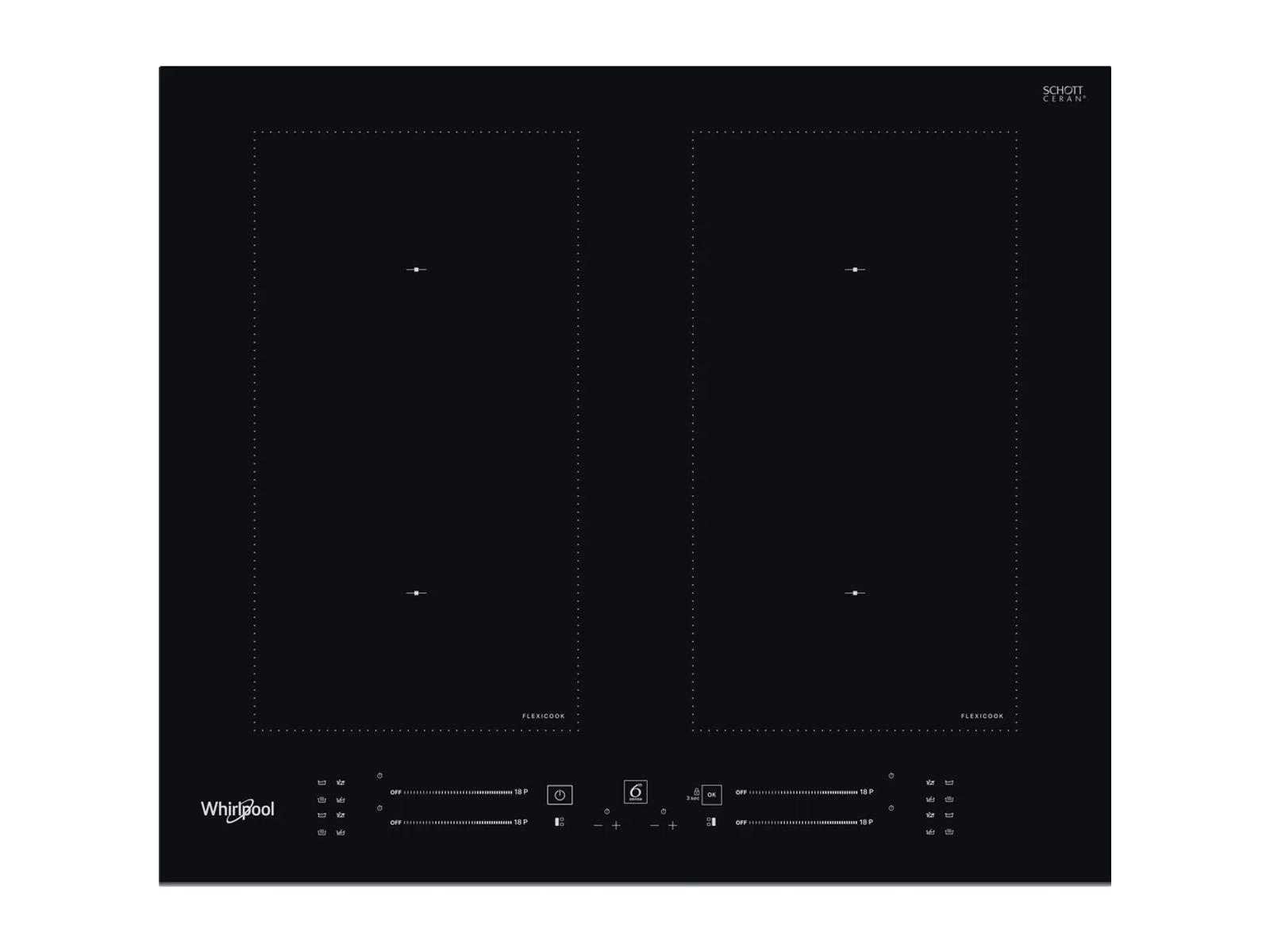 4 inductiezones. flexiCook technologie laat u meerdere pitten tot één zone samenvoegen, ideaal voor grotere potten en pannen. Intuïtieve schuifregelaar, voor moeiteloze bediening van de apparaatinstellingen. Kenmerken van deze Whirlpool inductiekookplaat: Een elegante technologie die de pan en niet de kookplaat verwarmt, energieverspreiding beperkt en perfecte kookresultaten biedt. Elektrische voeding. Deze inductiekookplaat wordt standaard op 2 fasen aangesloten. Het is mogelijk om deze aan te sluiten op 1 fase of 3 fasen, afhankelijk van de stoppenkast en de functie Power Management.