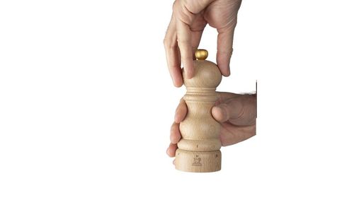Deze zoutmolen is gemaakt van beukenhout uit duurzaam beheerde Franse bossen en geschikt voor droge zoutkristallen. Dankzij het gepatenteerde u'Select-maalsysteem van Peugeot kan je zelf de maalgraad instellen en de korrelgrootte van het zout naar wens aanpassen. Het hout accentueert het iconische silhouet van de Paris-molen en bezorgt deze zoutmolen een tijdloze, elegante uitstraling. Met zijn hoogte van 15 cm is hij het ideale formaat voor aan de tafel en in de keuken.