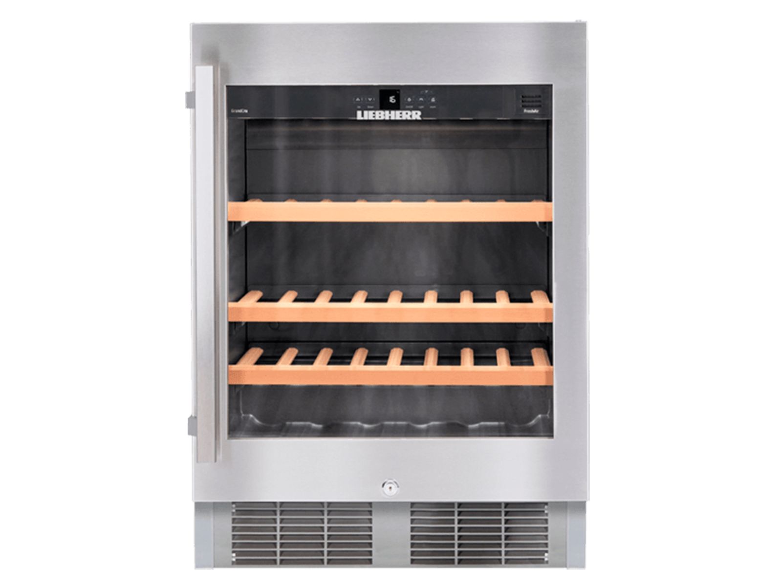 De Liebherr UWKes 1752 met 1 constante temperatuur is ideaal voor het bewaren van maximaal 46 wijnflessen. Onderbouw model met isolatieglas deur en edelstaal kader en greep. De houten plateaus lopen op rails en de LED verlichting is apart schakelbaar. Voorzien van FreshAir filter en alarmering.