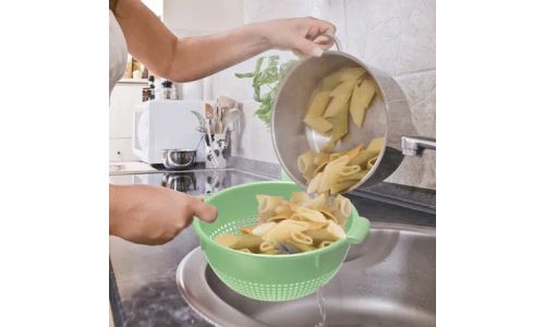 • Groot, rond vergiet voor het wassen en afgieten van fruit, groenten, salade en pasta.