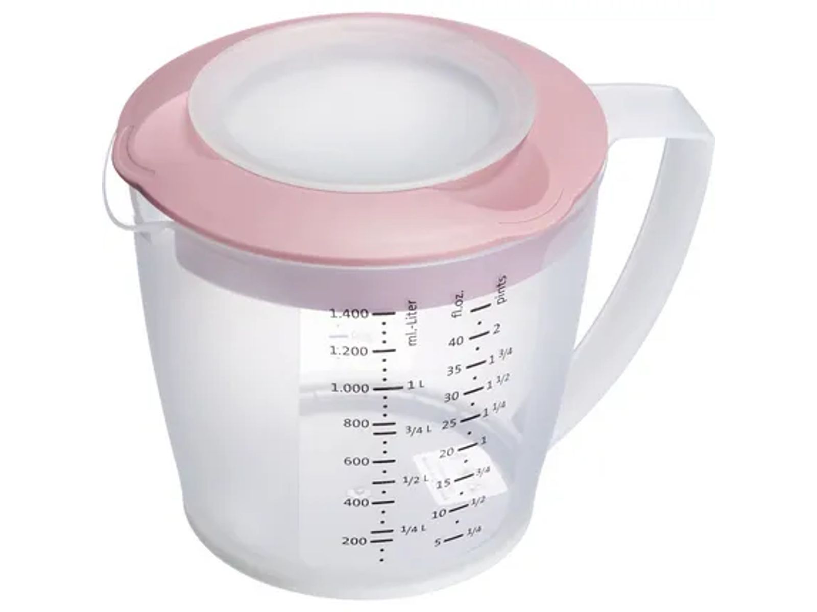 Helena maatbeker met deksel uit kunststof roze 1.4L