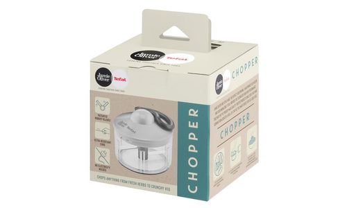Jamie Oliver by Tefal Home Cook hakmolen: Het nieuwe hakken en snijden Jamie Oliver en Tefal vormen de perfecte combinatie. Jamie brengt de passie en kennis over koken; Tefal zorgt voor de technologie en kwaliteit. Samen maken ze al bijna twee decennia kwaliteitsproducten die van koken een waar genot maken. Van knapperige groente en verse kruiden tot knoflook, noten en nog veel meer, de Jamie Oliver by Tefal hakmolen hakt het allemaal. Bevestig de messen, doe je ingrediënten in de kom, sluit het deksel en trek aan de hendel. Eenmaal, tweemaal, driemaal... herhaal voor fijnere resultaten. Het robuuste, gepatenteerde systeem zorgt voor snel en perfect hakken, zelfs bij harde ingrediënten. Het sterke koord en de ulta-resistente roestvrijstalen messen zijn gemaakt om lang mee te gaan. Deze multifunctionele, handmatige hakmolen is gemakkelijk schoon te maken dankzij de vaatwasserbestendige kom en messen, en heeft geen elektriciteit nodig - dus overal te gebruiken. Jamie Oliver en Tefal: de slimme keuze voor keukenproducten.