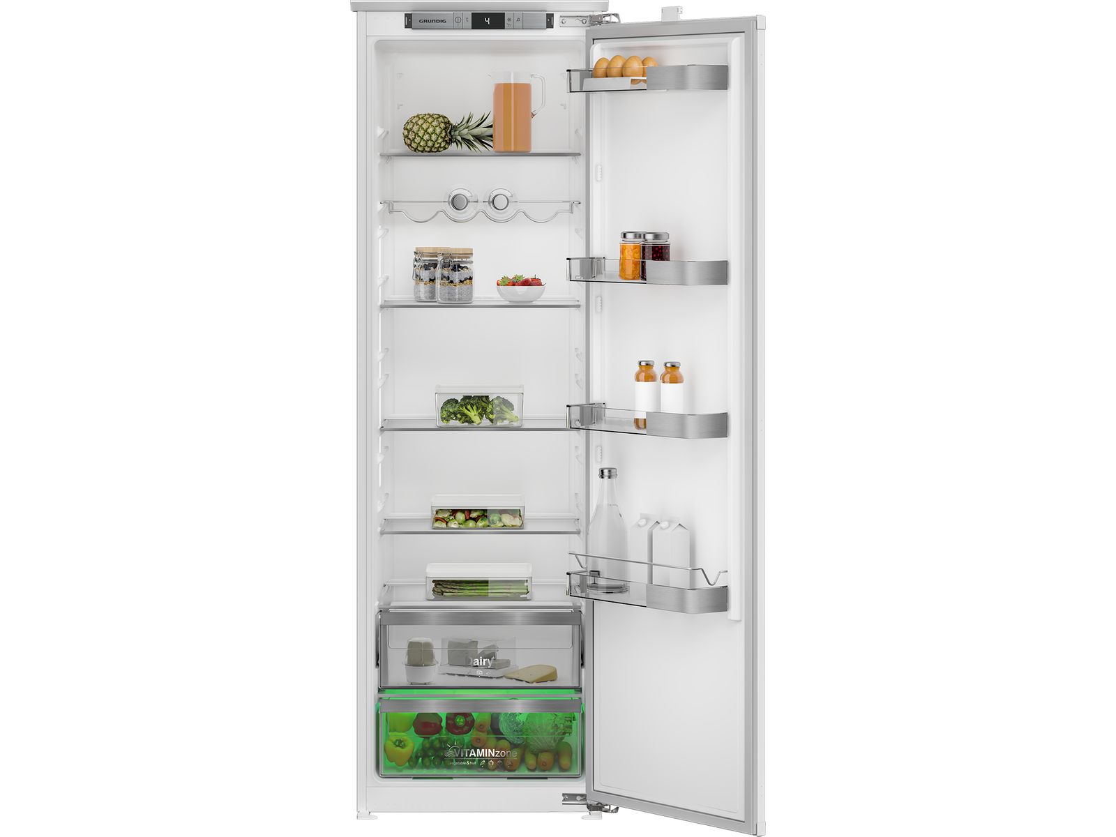 De LED-verlichting zorgt voor optimaal licht in uw Grundig koelkast. Ze verbruikt aanzienlijk minder energie en geeft veel minder warmte af in het interieur dan conventionele verlichting.