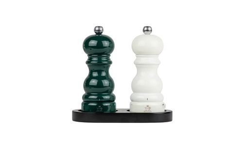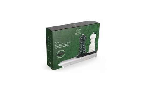 Duo Paris Geschenkverpakking - Duo u'Select 15 cm zout- en pepermolens, met zwart bamboe dienblad