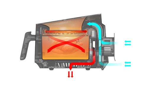 - Dankzij de radiant heating technologie kan de airfryer binnen enkele seconden een temperatuur van 200 graden bereiken. Hierdoor hoef je niet te wachten en kun je direct beginnen met koken.