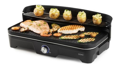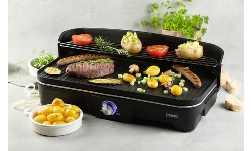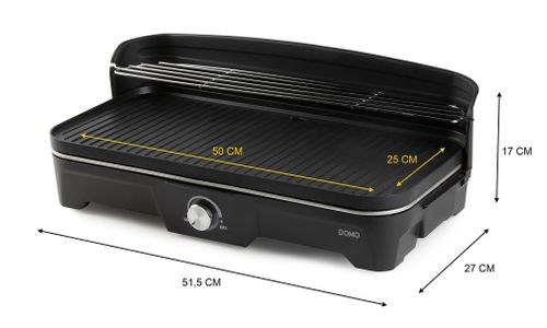 Combineer de authentieke barbecue-ervaring met de veiligheid, gezelligheid en het gebruiksgemak van onze elektrische DOMO BBQ grill met windscherm DO9260G. Geniet van moeiteloos grillen dankzij de hoogwaardige bakplaat met antiaanbaklaag, de regelbare thermostaat, het extra grillrekje en afneembaar windscherm. Met zijn ruime grillplaat bereid je moeiteloos heerlijke gerechten voor je familie of vrienden. Deze tafelgrill BBQ is super eenvoudig proper te maken dankzij de makkelijk verwijderbare bakplaat, het handige opvangbakje voor vet én het feit dat de afneembare onderdelen vaatwasmachinebestendig zijn! Een ruim bakoppervlak van 50 x 25 cm garandeert dat niemand lang moet wachten op zijn favoriete barbecuegerechten, zo zorgt deze elektrische BBQ voor heerlijk gezellige avonden!
