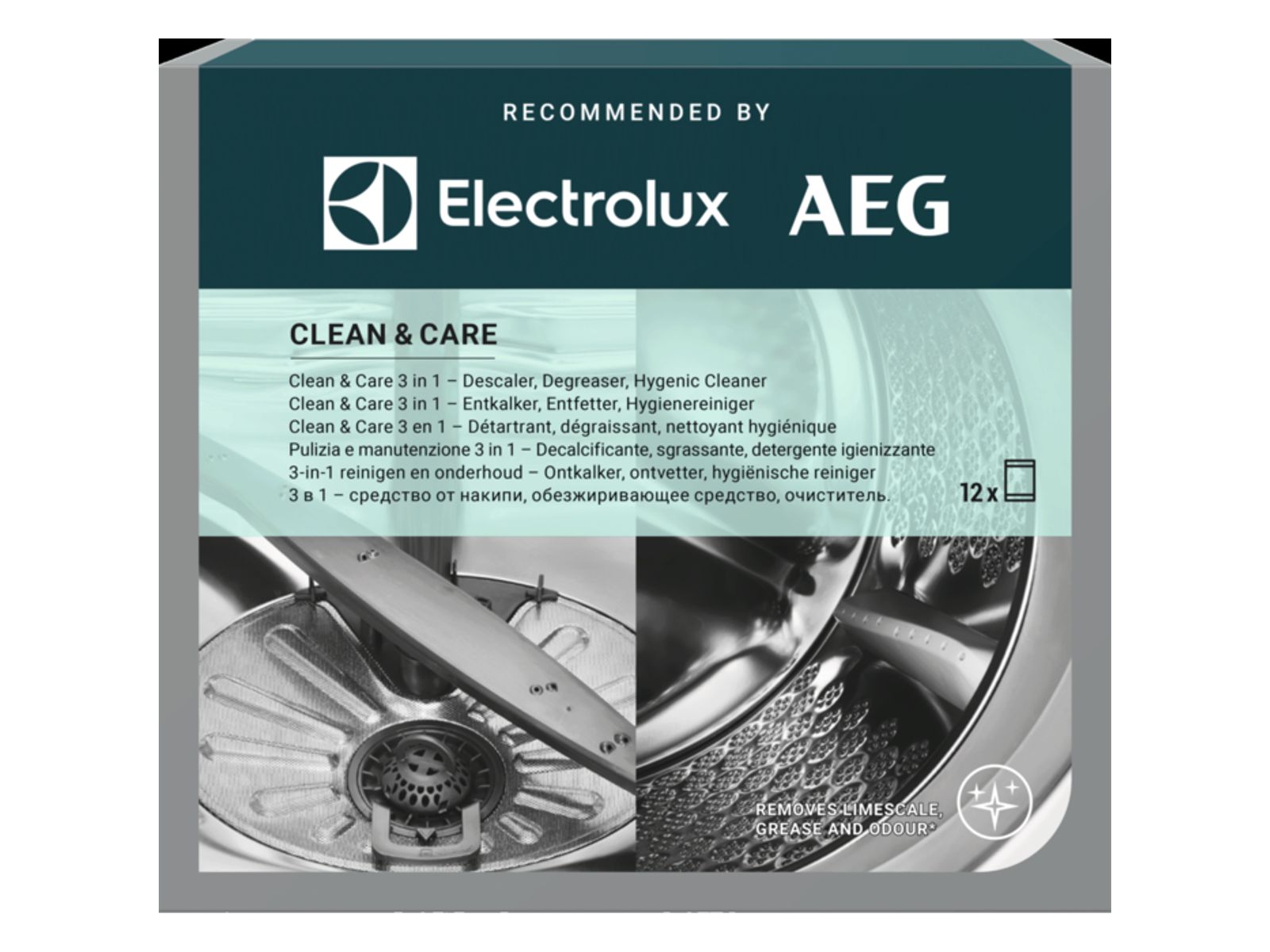 Clean and Care - 3 in 1 (ontkalker / ontvetter en hygiënische reiniger voor wasmachine en vaatwasser (12 zakjes = 12 maanden onderhoud)