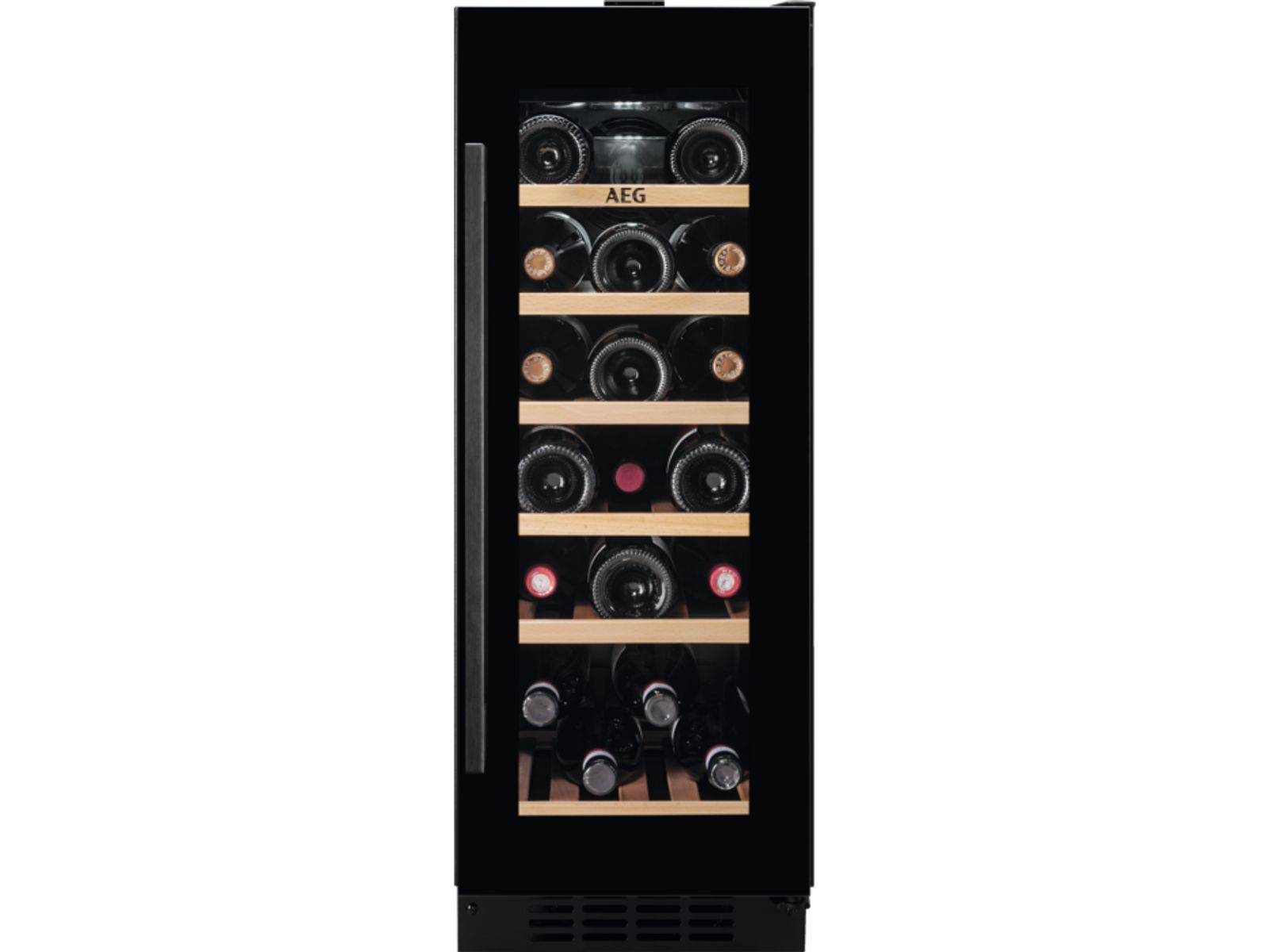 Pak makkelijk die ene fles waar je naar zoekt, dankzij de uittrekbare houten legplanken (zonder geleiders).