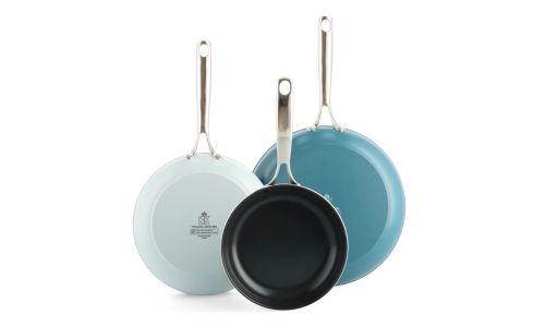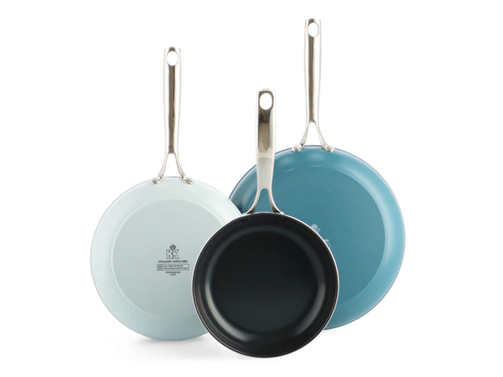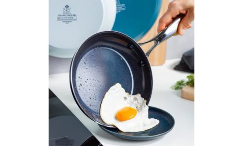 Look up to the blue sky! BK heeft zich laten inspireren door prachtige Hollandse luchten voor deze 3-delige promotieset met een mix van blauwe kleuren. En met de fraaie roestvrijstalen handgreep passen de koekenpannen perfect bij de nieuwe BK Twist kookpannen.
