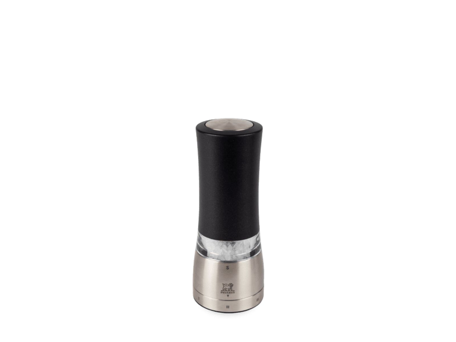 DDe elektrische zoutmolen u'Select, 16 cm, weet roestvrij staal elegant te combineren met een afwerking in iriserend zwart. Je bedient deze handige elektrische zoutmolen met één hand, door een simpele druk op de knop breng je je gerechten op smaak terwijl je in de potten blijft roeren. Dankzij het lichtje dat brandt tijdens het malen, kan je makkelijk de juiste hoeveelheid zout doseren. Hul je tafel in verfijnde elegantie met de elektrische zoutmolen u'Select in iriserend zwart.