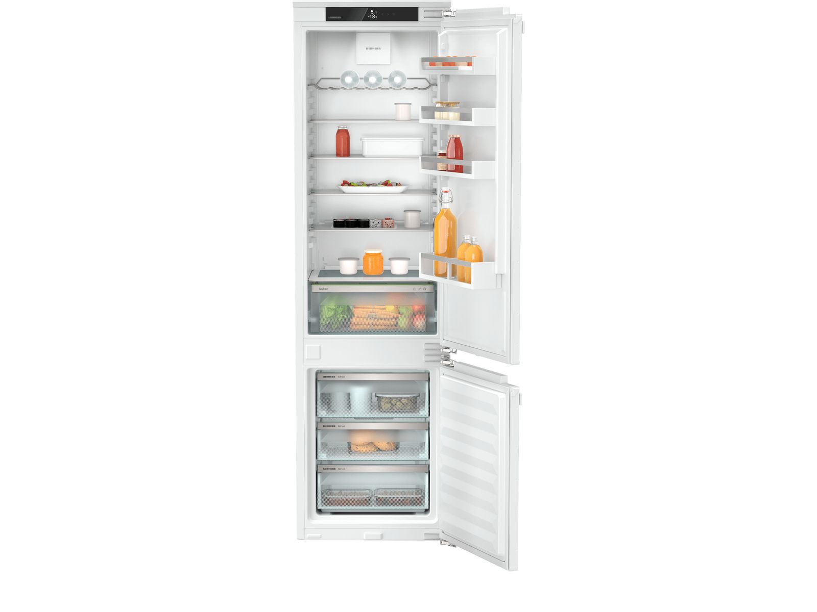 Deze extra hoge nis 194 inbouw koel/vriescombinatie uit de Pure-serie voorziet in alle essentiële behoeften. In de EasyFresh lade bewaart u groenten en fruit bij de ideale luchtvochtigheid. Het ruime koeldeel biedt plaats aan een volledige bakplaat en wordt dankzij de LED plafondverlichting goed verlicht. Het FreshAir filter zorgt voor een fris interieur en het NoFrost vriesdeel hoeft nooit te worden ontdooid en biedt ook plaats aan grote verpakkingen. Geschikt voor smarthome toepassingen dankzij optionele SmartDeviceBox.