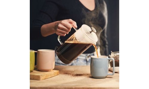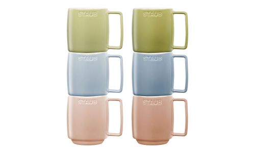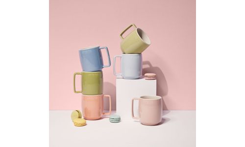 Ze zeggen dat je niet iedereen tevreden kunt stellen, maar je kunt het zeker proberen met deze set keramische mokken in zes pasteltinten. Laat je familie of gasten hun favoriete kleur én hun favoriete warme drank kiezen: Franse koffie, sterke thee met melk, romige cappuccino, geurige kruidenthee of warme chocolademelk – de mogelijkheden zijn eindeloos. Gelukkig zijn de keramische mokken robuust en gemakkelijk schoon te maken: gewoon in de vaatwasser en klaar voor de volgende pauze. En als je ze echt even niet nodig hebt, kun je ze stapelen om ze op te bergen. De bijpassende tinten in licht- en donkerroze, groen en blauw zorgen zelfs voor een harmonieuze presentatie in je kast, of wanneer je ze met de ergonomische handgrepen aan een kopjesrek hangt.