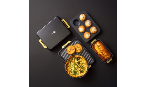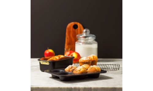 Met goudkleurige, slijtvaste handgrepen en een stevig afkoelrek is dit de ideale keuze voor creatieve bakkers die bij elke bakbeurt perfecte resultaten en stijl willen!