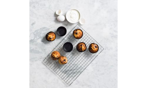 Deze hoogwaardige accessoireset van GreenPan uit de Bistro-serie biedt alles voor het moeiteloos bereiden van heerlijke muffins, cupcakes en quiches. Dankzij de flexibele siliconen vormen wordt losmaken eenvoudig, terwijl het duurzame materiaal zorgt voor langdurig gebruik. De set is ovenbestendig tot 230°C en eenvoudig te reinigen in de vaatwasser, wat zorgt voor optimaal gebruiksgemak. Met de bijgeleverde keukentang wordt het serveren extra gemakkelijk. Geschikt voor grotere airfryers, maakt deze set gezond en creatief bakken toegankelijk voor elke keuken. Kies voor de kwaliteit en duurzaamheid waar GreenPan om bekend staat en geniet van heerlijke, zelfgemaakte lekkernijen.