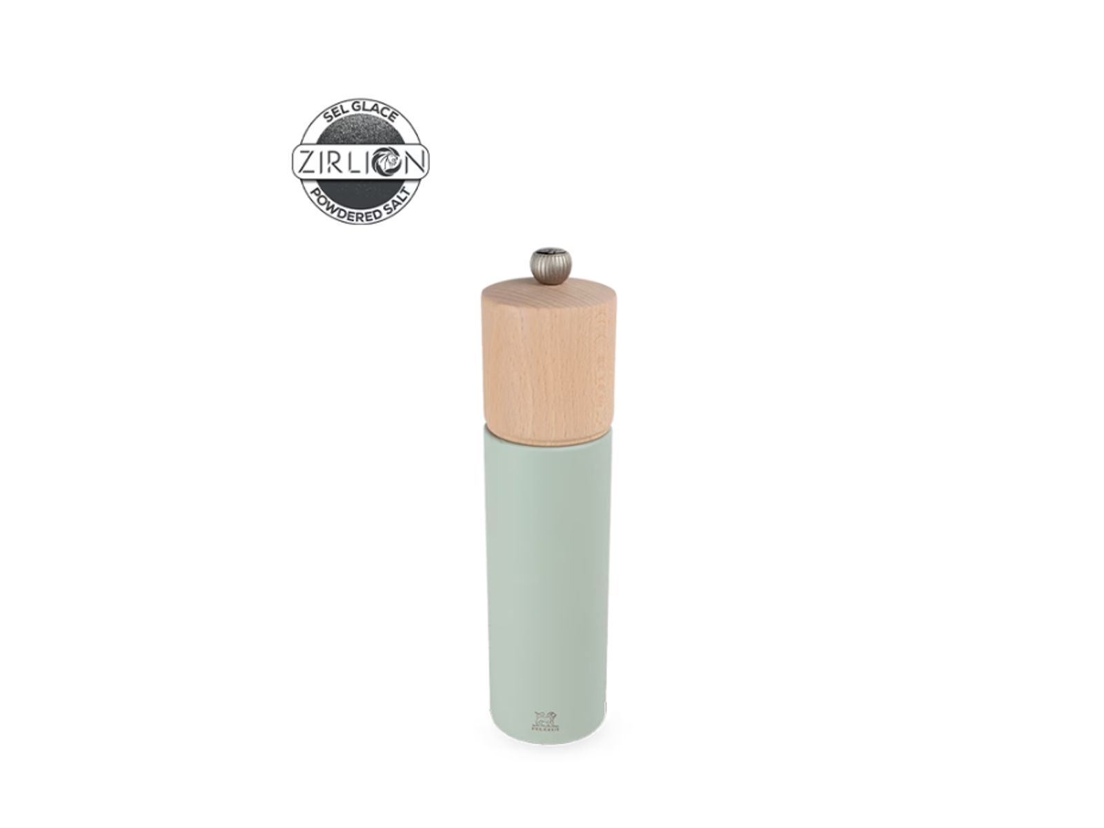 Het ontwerp van deze droogzoutmolen combineert hout met een kleur die is geïnspireerd door de natuur. De saliegroene kleur is ontworpen om harmonieus samen te gaan met de gedempte, delicate kleuren van de pepermolens in de Boreal collectie. Dit palet betekent dat iedereen een paar zout- en pepermolens kan creëren die bij hun persoonlijkheid passen.