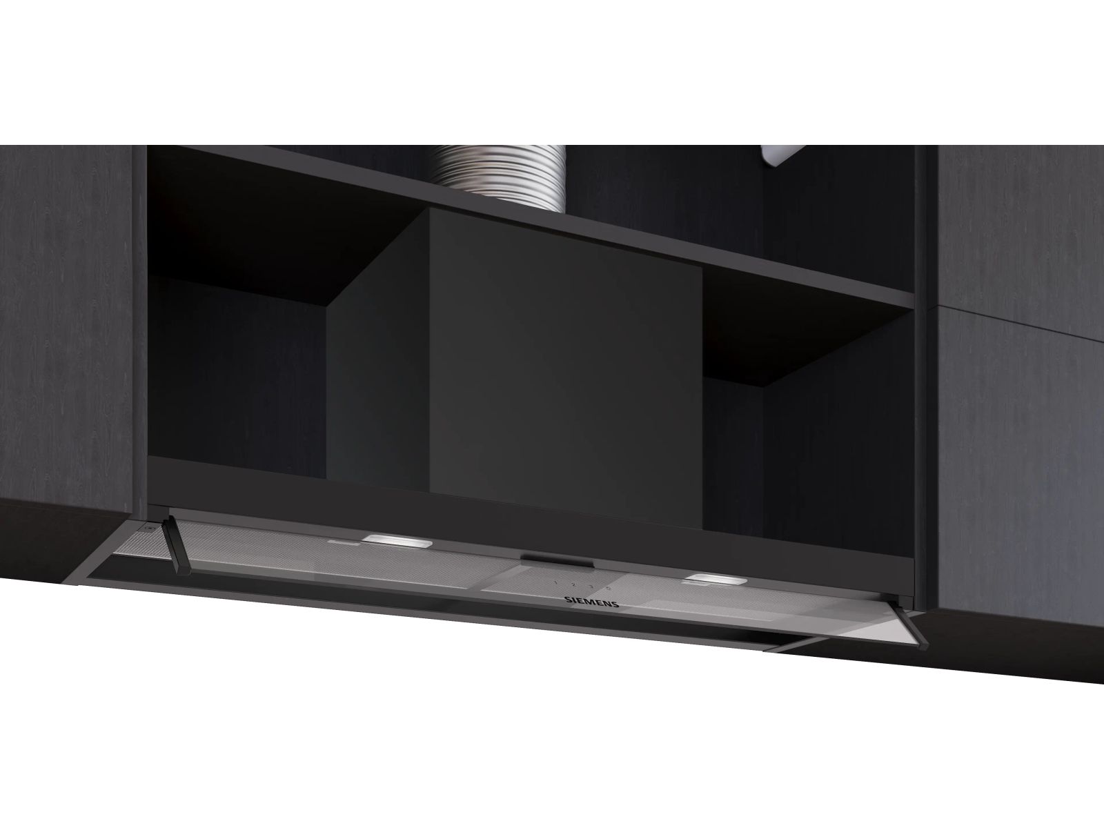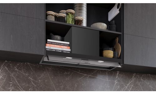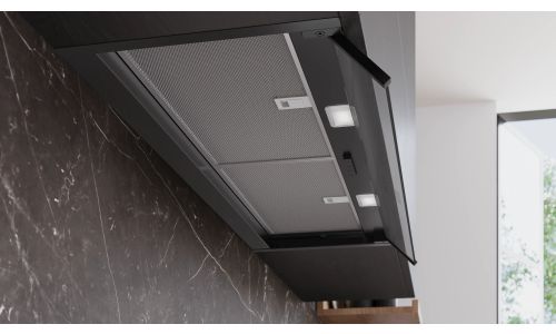 Dampkap IQ300 Geïntegreerde design schouwdampkap 90 cm, matt zwart, 3 standen, 582 m3/h, 65 dB, druktoetsen, 2 PC, LM2-01_LED_1,5W, , klasse B Mat zwart B