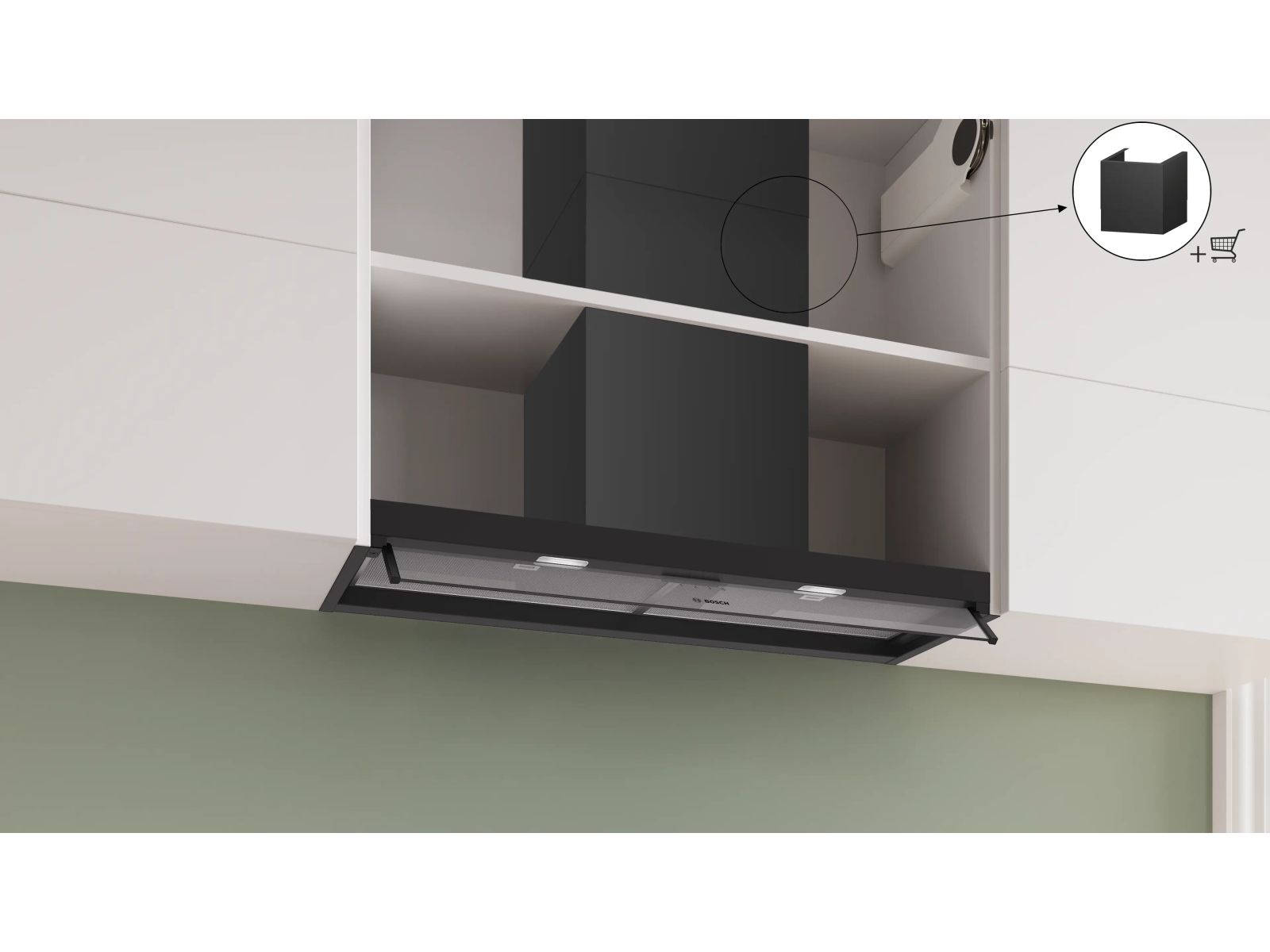 Dampkap Serie 4 Geïntegreerde design schouwdampkap 90 cm, matt zwart, 3 standen, 582 m3/h, 65 dB, druktoetsen, 2 PC, LM2-01_LED_1,5W, , klasse B Mat zwart B