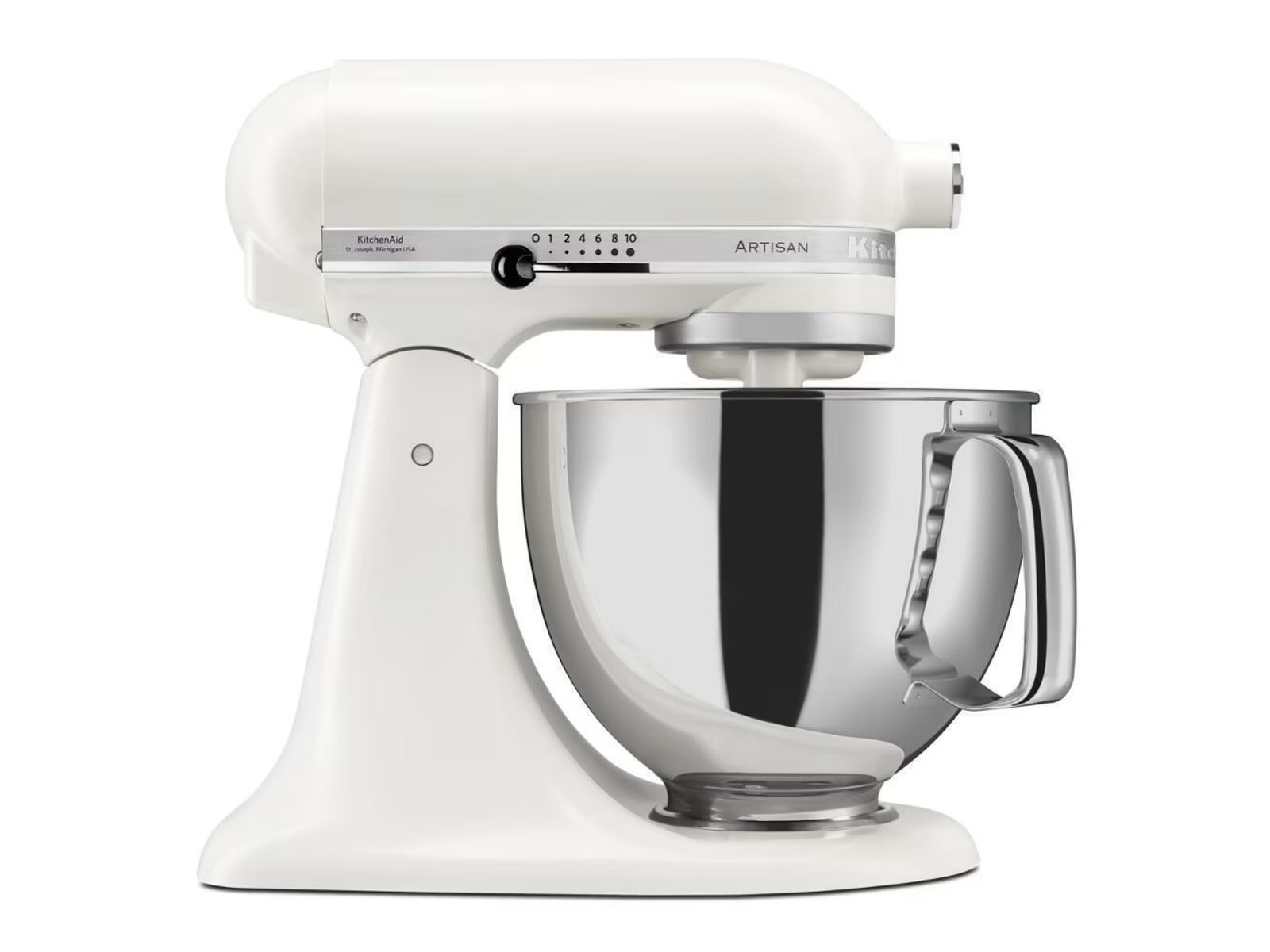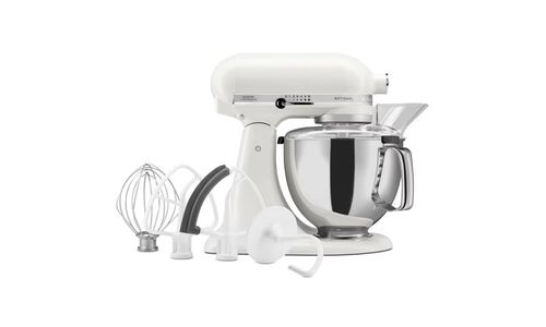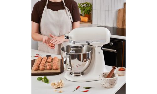 Keukenrobot 4,8 L - Artisan is de iconische KitchenAid keukenrobot en het resultaat van meer dan 100 jaar innovatie. Dankzij het unieke, degelijke ontwerp is het apparaat haast een verlengstuk van je handen. Je kunt jezelf uitdrukken met je eigen creaties. De motor met directe aandrijving is stil en gaat lang mee, zonder vermogensverlies tussen de motor en de accessoires. Het originele planetaire kneedsysteem zorgt voor snel en grondig mengen en voor wel 59 raakpunten per omwenteling in de kom. Kies je favoriet die bij je interieur past uit de vele kleuren, van zachte neutrale kleuren tot stijlvolle zilverkleuren. De keukenrobot wordt geleverd met 4,8 L Roestvrijstalen mengkom waarin maximaal 1 kg bloem, 1 L slagroom, 1,5 kg aardappelpuree of 108 koekjes kunnen worden verwerkt(3). Bij dit model keukenrobot vind je extra accessoires in de doos. Naast de standaard garde, menghaak en kneedhaak, krijg je ook een extra roestvrijstalen kom van 3 L, een schenkschild en een platte menghaak met flexibele kant die als een handige schraper werkt, ideaal voor cakebeslag, glazuur en aardappelpuree. Creëer nog meer door handige optionele accessoires (afzonderlijk verkrijgbaar) aan de multifunctionele accessoirenaaf toe te voegen. Bevestig alles van een pastasnijder tot een vleesmolen, Japanse groentesnijder of graanmolen, en laat je creativiteit de vrije loop.