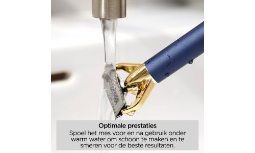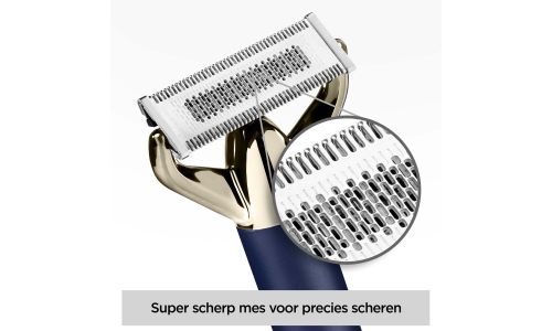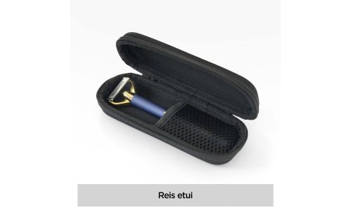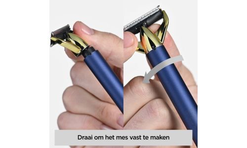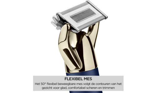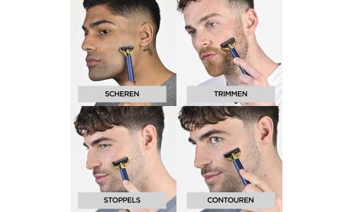 Met een geavanceerd 50º flexibel Japans stalen mes volgt de X-Blade comfortabel de contouren van je gezicht voor consistente huidcontact tijdens het trimmen van je baard.