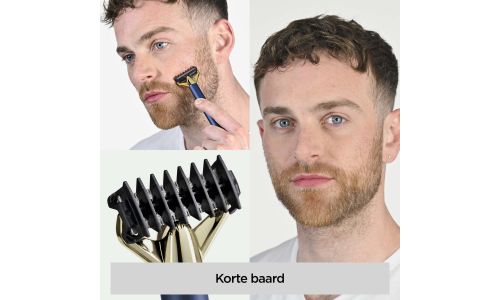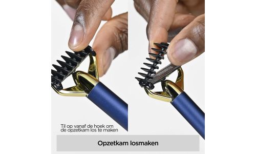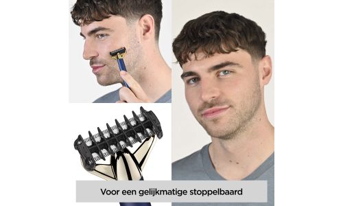 Je kunt kiezen uit verschillende lengtes voor een gladde scheerbeurt, precieze stoppels of een korte baard met opzetkammen van 1-5 mm. Het slanke metalen handvat is ontworpen voor comfort, duurzaamheid en eenvoudig trimmen.