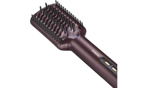 Keramische gladmakende plaat met straightening vinnen en precies gespreide siliconen borstelharen om perfecte spanning te creëren op alle haartypes.
