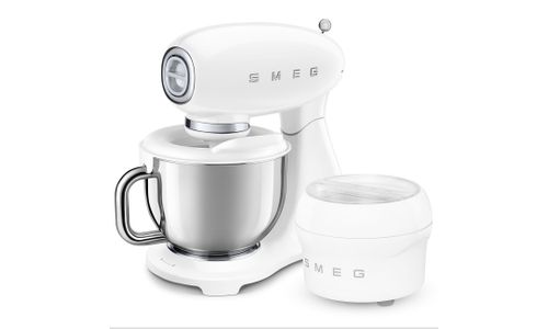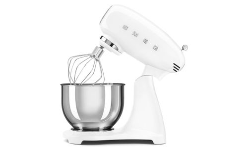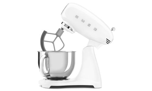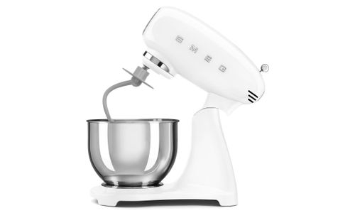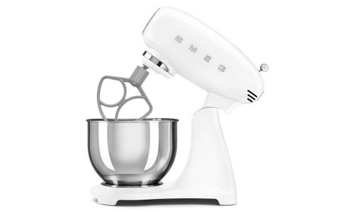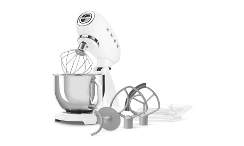 Prestaties en elegantie beschrijven op zijn best het ontwerp van de mixer/keukenrobot in jaren 50-stijl, een functioneel hulpmiddel dat verfijning en stijl in de keuken geeft