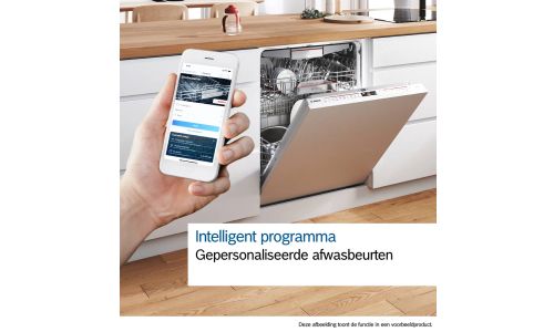 Veel gezinnen willen, net als jij, dat hun vaatwasser nog beter afwast en droogt, en nog sneller klaar is. Met het intelligent programma* past je vaatwasser het vaatwasproces aan. Na afloop van elk programma kan je het afwassen en drogen of de looptijd van het programma beoordelen via de Home Connect-app. De vaatwasser past dan automatisch haar instellingen aan en stelt je verschillende alternatieven voor, zoals een energiezuinige optie. Bovendien geeft het programma je een compleet overzicht van je water- en energieverbruik. *Je kunt het intelligent programma gebruiken als je voldoet aan de volgende voorwaarden: je hebt een Home Connect-account (waarvoor aparte gebruiksvoorwaarden gelden), je hebt de Home Connect-app geïnstalleerd op een mobiel apparaat, je vaatwasser is aangesloten op het internet en je hebt je vaatwasser aangesloten op je Home Connect-account.